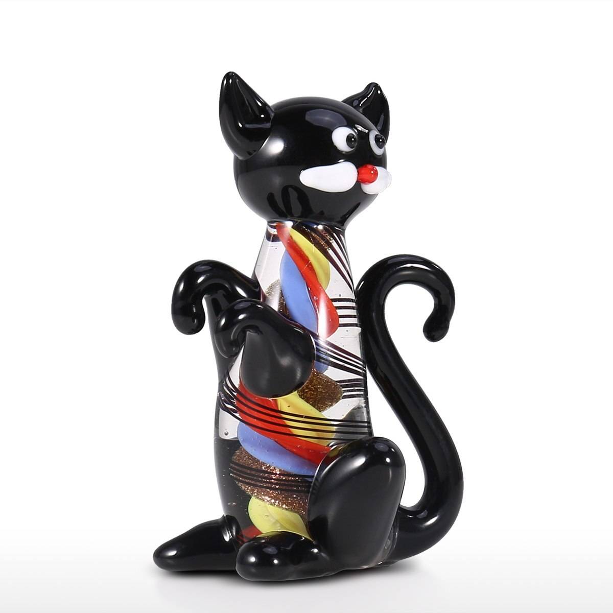 Black Kitten Mini Cat Figurine Glass Animal Statue Ornament Glass valentines day gift home decoration accessories feng shui