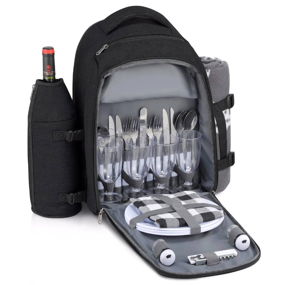 Gonex Picnic Backpack Bag for 4 Person with Insulated Cooler Compartment, Fleece Blanket, Detachable Wine Holder, Cutlery Set